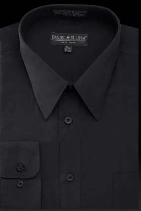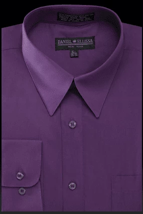 Daniel Ellissa men’s basic dress shirt comes in a variety of solid colors. The long sleeve buttoned shirt features a collar and buttoned cuffs.Â
