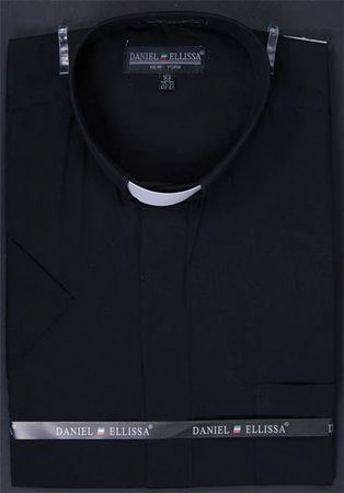 Black short sleeve clergy shirt. Poly/Cotton 65%/35% Blend.