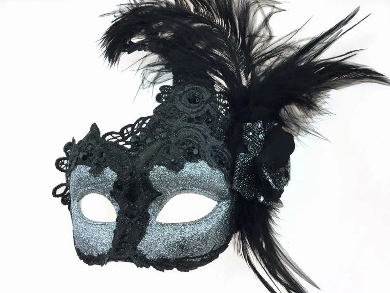 KBW Global Corp Masquerade Masks Mask Lace W/ Feathers On Side
