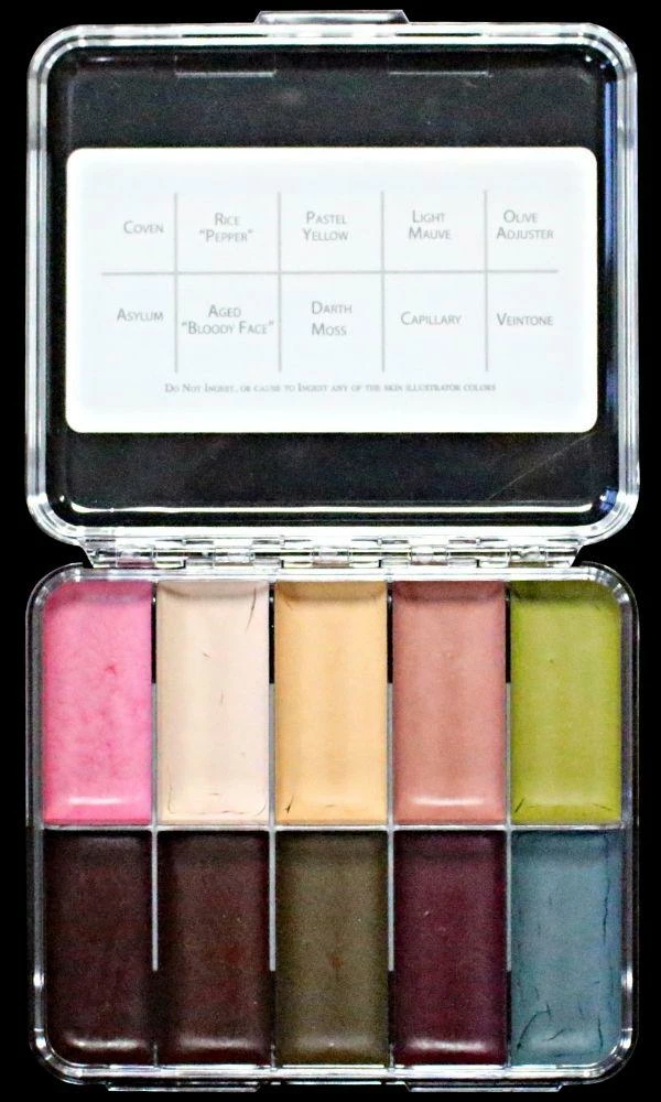 Created for American Horror Story’s Makeup Dept. Head, Eryn Krueger Mekash. This unique palette contains two new colors specifically designed by her makeup crew for the AHS series. ‘Coven’ and ‘Asylum’ were added to the palette to meet the demanding needs of AHS. From beauty and old age to bloody zombies and witches, the American Horror Palette is an integral part of this award winning show.