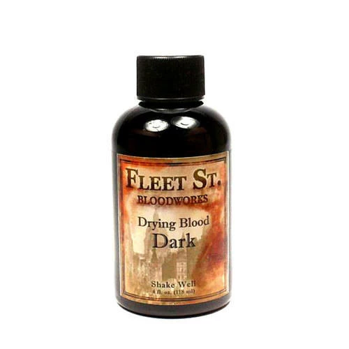 Drying Bloods are available in two colors: “Fresh”, a vibrant natural tone and “Dark” a deep moody blood tone that intermix to create your desired look. Use them with the Fleet Street Blood Pastes to add depth and texture to your blood work. Fleet Street Drying Bloods allow the makeup artist to layer the bloods to get a deep sense of color and realism.