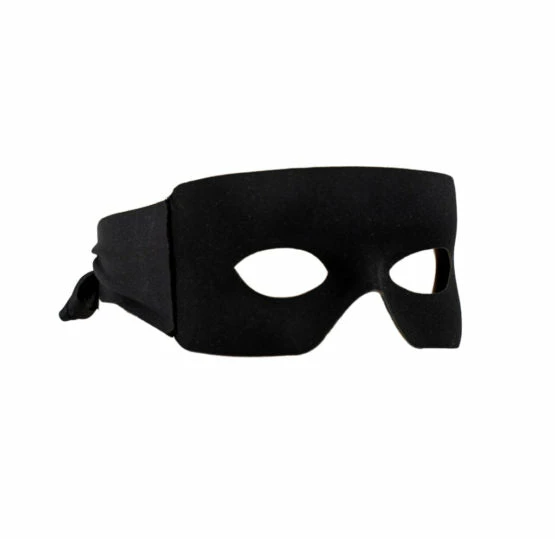 Tie on this Black Bandit Eye Mask. Structured mask with soft ties. Made in Italy.