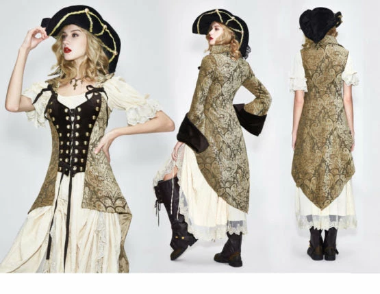 Western Fashion Pirate & Medieval/Renaissance Women’s Brown Pirate Coat